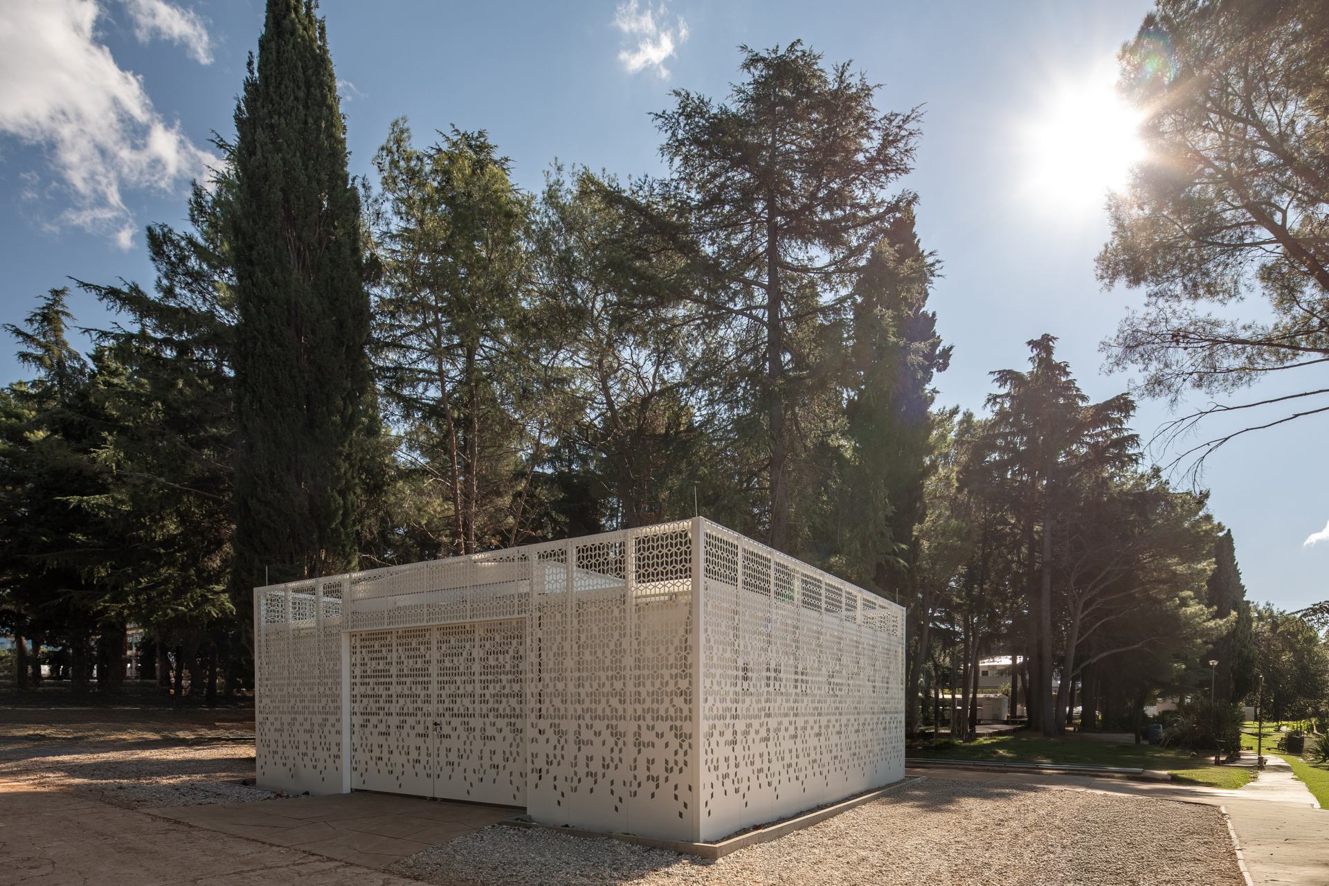 Vanjski vizualni identitet objekta definira suvremena HPL fasada u imitaciji drva u kombinaciji s dizajnerskom perforiranom metalnom fasadom, koja objektu daje dozu profinjenosti i prozračnosti. Poseban arhitektonski element je pergola od lameliranih greda koja povezuje module u jedinstvenu i skladnu cjelinu, stvarajući prirodan prijelaz između objekta.