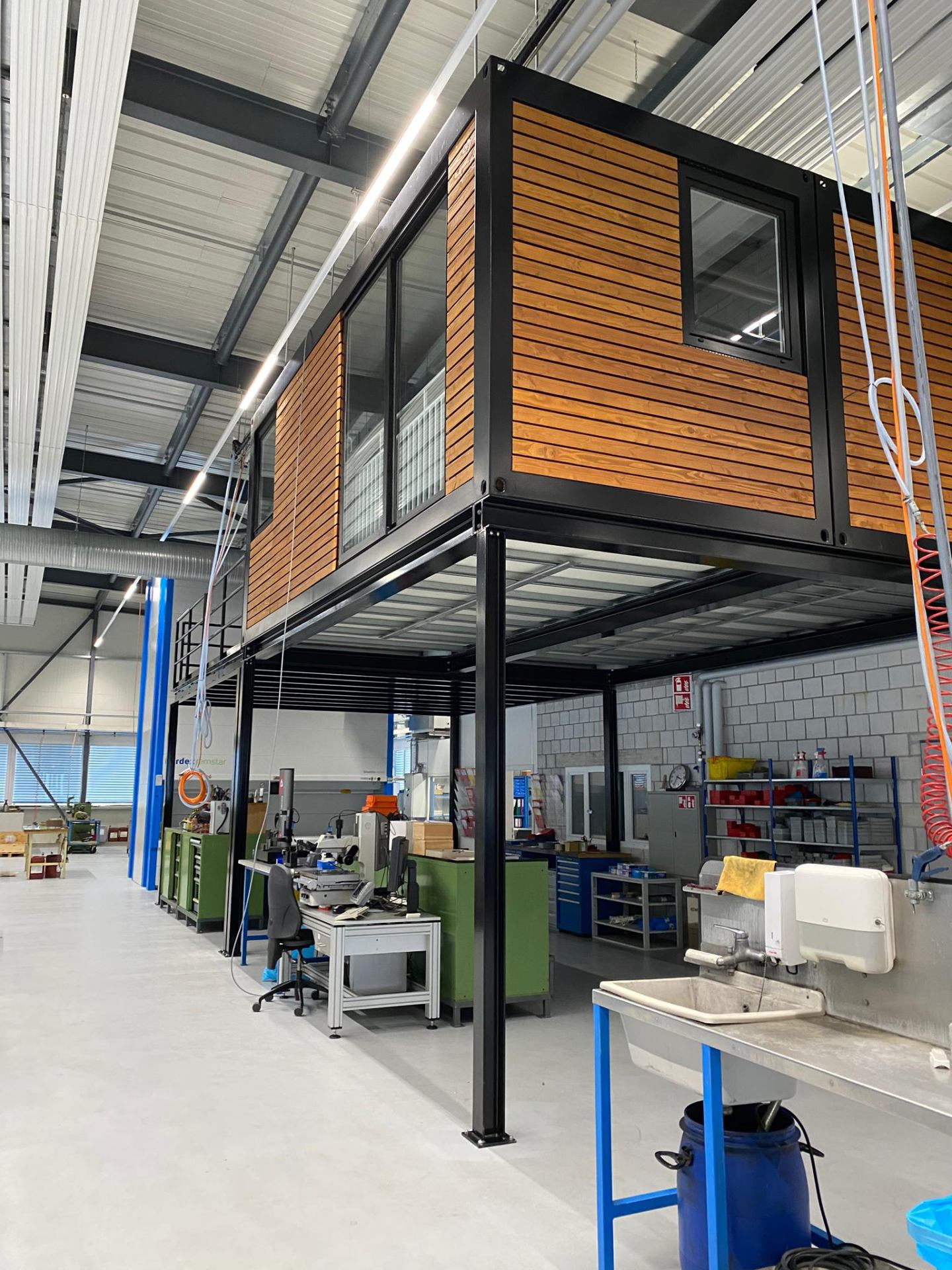 Za naše klijente u Švicarskoj realizirali smo seriju namjenskih kontejnerskih objekata projektiranih za integraciju unutar postojećih industrijskih hala. Ovi "objekti u objektu" predstavljaju idealno rješenje za stvaranje izoliranog i funkcionalnog radnog prostora usred proizvodnih pogona, pružajući zaposlenicima maksimalnu zaštitu od buke i prašine bez potrebe za klasičnom gradnjom.