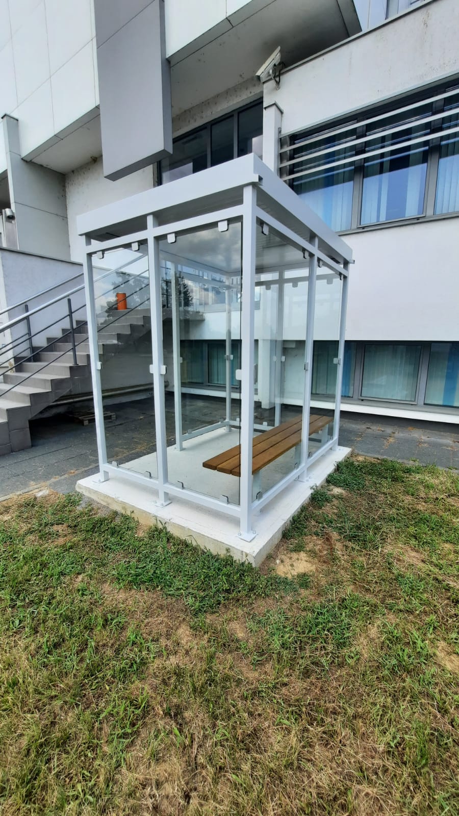 Zatvoreni prostori za pušače proizvode se u dimenzijama prema zahtjevu investitora uz prirodnu ventilaciju preko aluminijskih rešetki.
