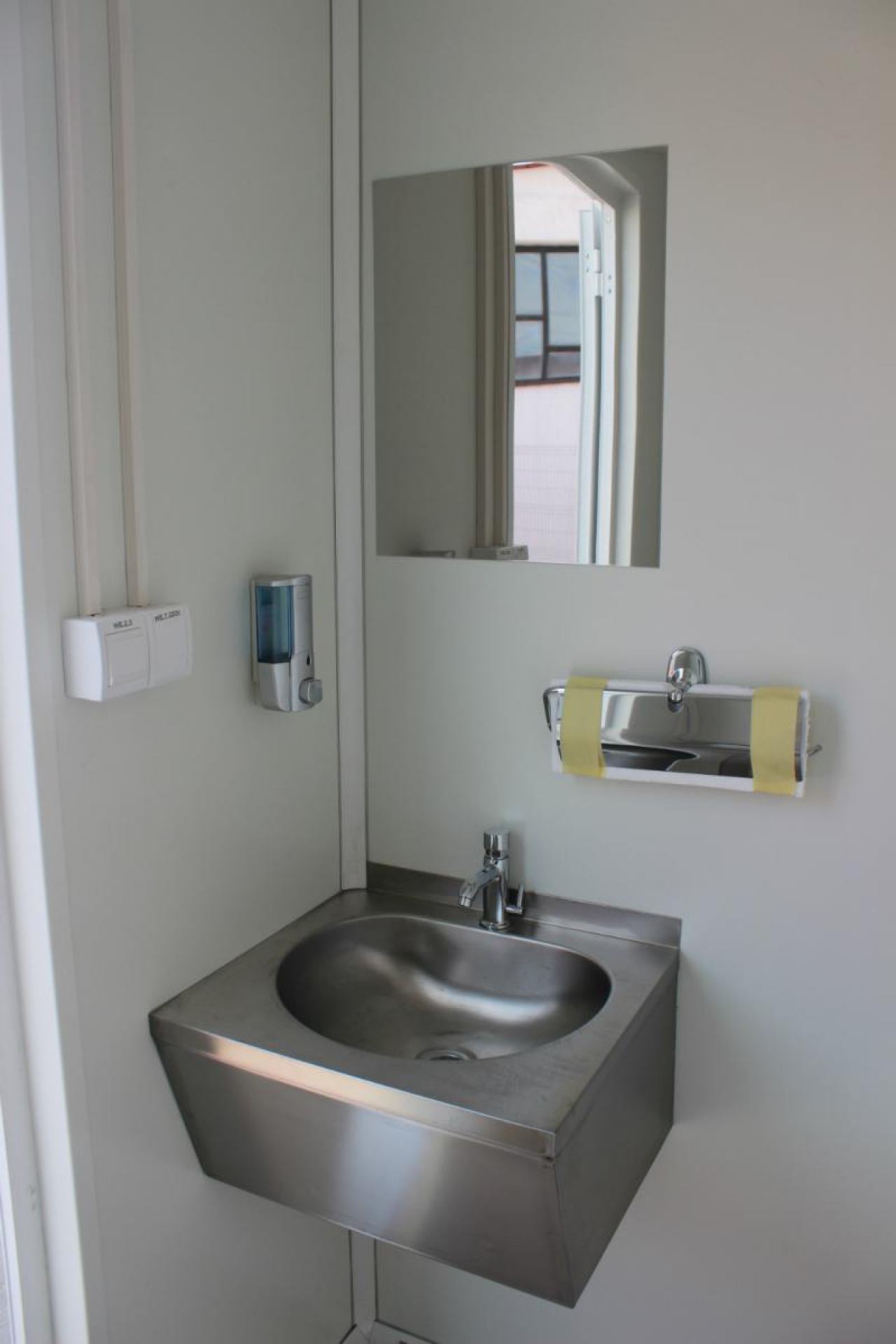 Toaleti imaju ugrađenu anti-vandal EUROmodul sanitarnu opremu od nehrđajučeg čelika inox AISI 304 (wc školjka, vodokotlić, umivaonici, ogledala).
