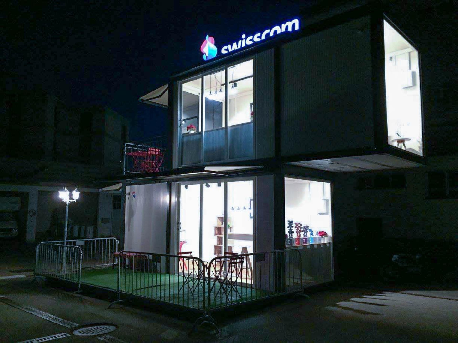 Uredski kontejnerski sklop proizveden po mjeri za SwissCom iz EUROmodul EUROSTANDARD kontejnera postavlja se u dvije različite varijante za evente i prezentacije.